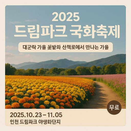| 즐길거리 | 🌼 국화 대군락 및 미니 정원, 테마 포토존, 친환경 체험 부스. |