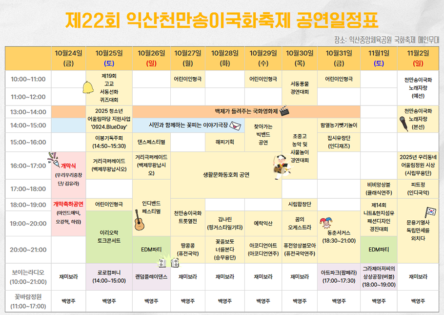 | 일정 | 2025. 10. 31. (금) ~ 11. 2. (일) |