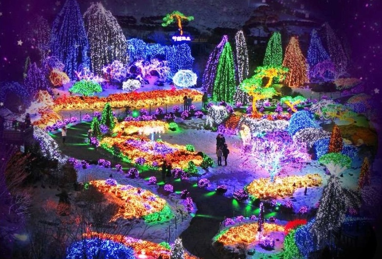 - 10만 평의 빛의 정원: 12만여 개의 LED 전구를 이용해 숲과 정원을 동물, 사랑, 식물 등 다양한 테마로 화려하게 장식합니다. 한국 자연의 미(美)와 빛의 조화가 독특한 분위기를 선사합니다.