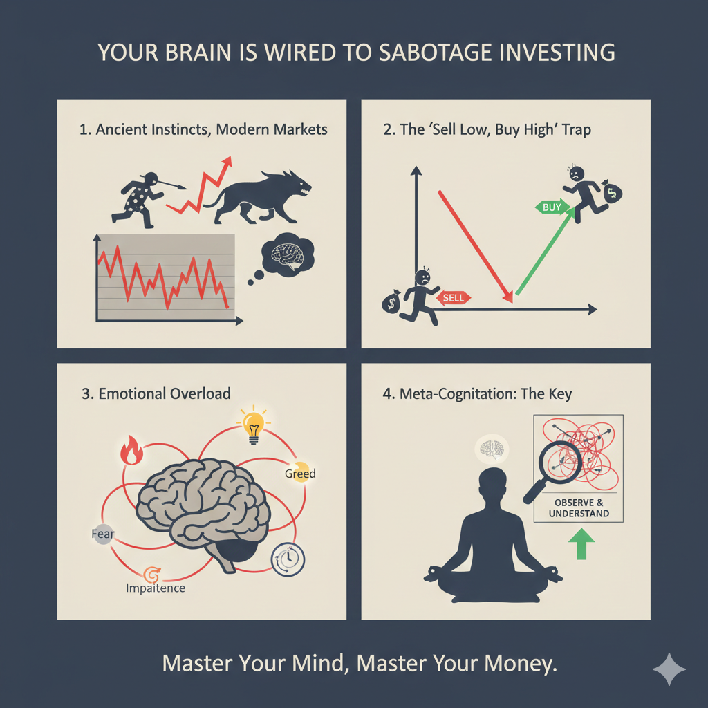 재테크 지식보다 중요한 것은 투자 심리입니다. 4050 투자자가 하락장에서 패닉 셀링을 하고 상승장에서 추격 매수하는 이유, '손실 회피의 덫'을 탈출하여 부자의 평정심을 갖는 법을 공개합니다.