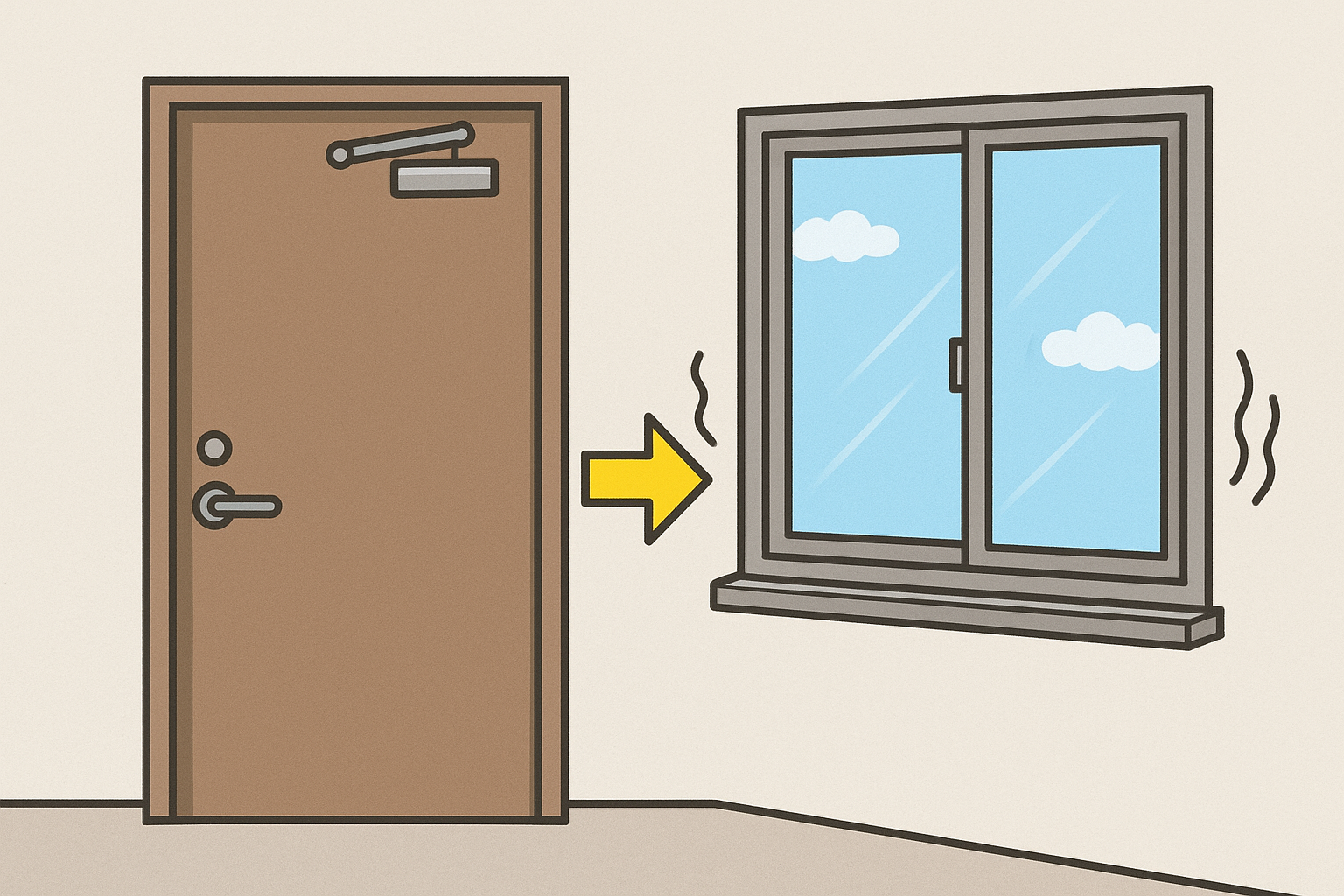 - 창문이나 환기구를 아주 약간 열어둠으로써 공기가 빠르게 이동할 통로를 만듭니다.