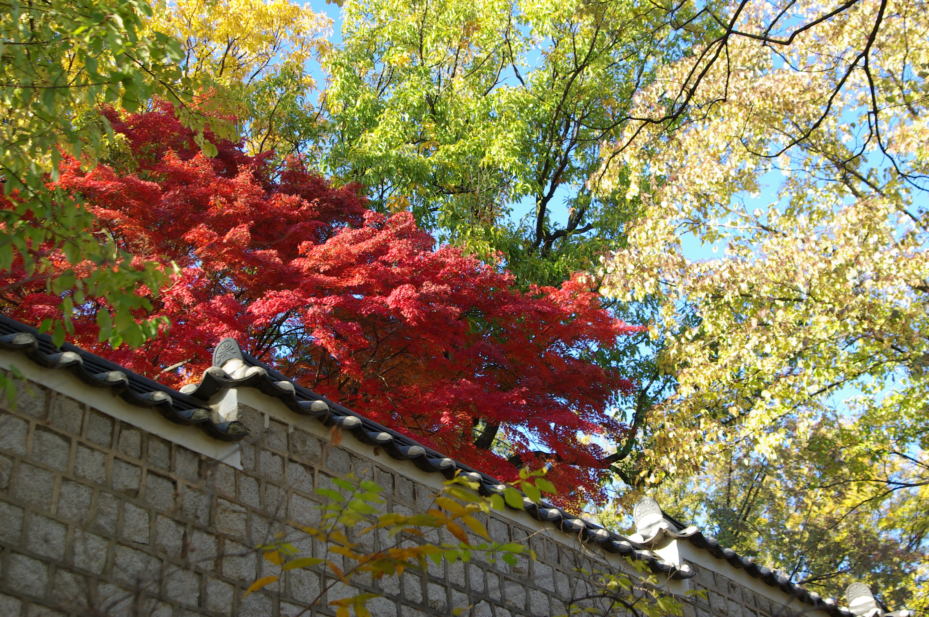 - 돌담길/아치형 문/붉은 단풍 나무 조합은 고궁만의 고유한 분위기를 잘 살릴 수 있어요.