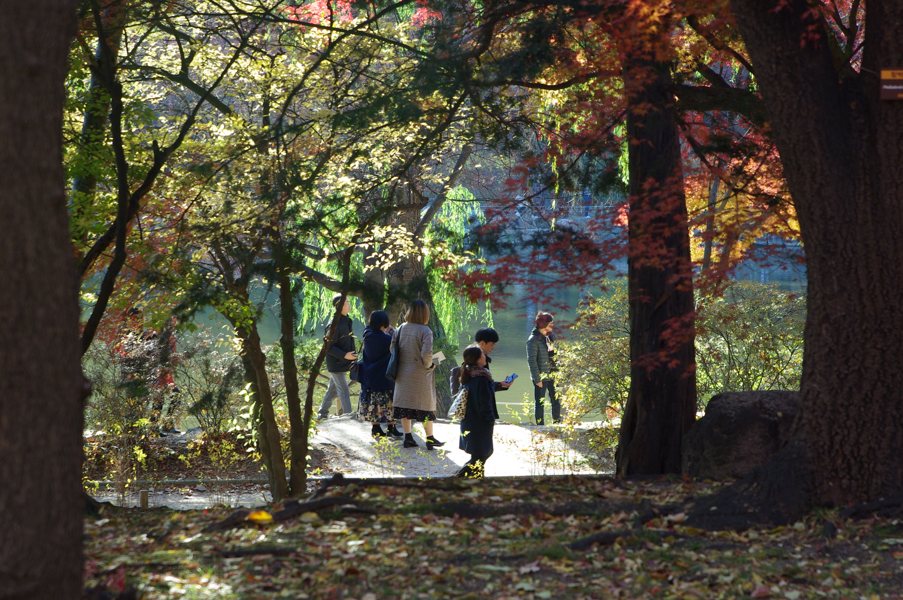 - 연못이나 누각이 있는 배경에서 단풍 나무를 앞세우면 깊이감 있는 사진이 나옵니다.