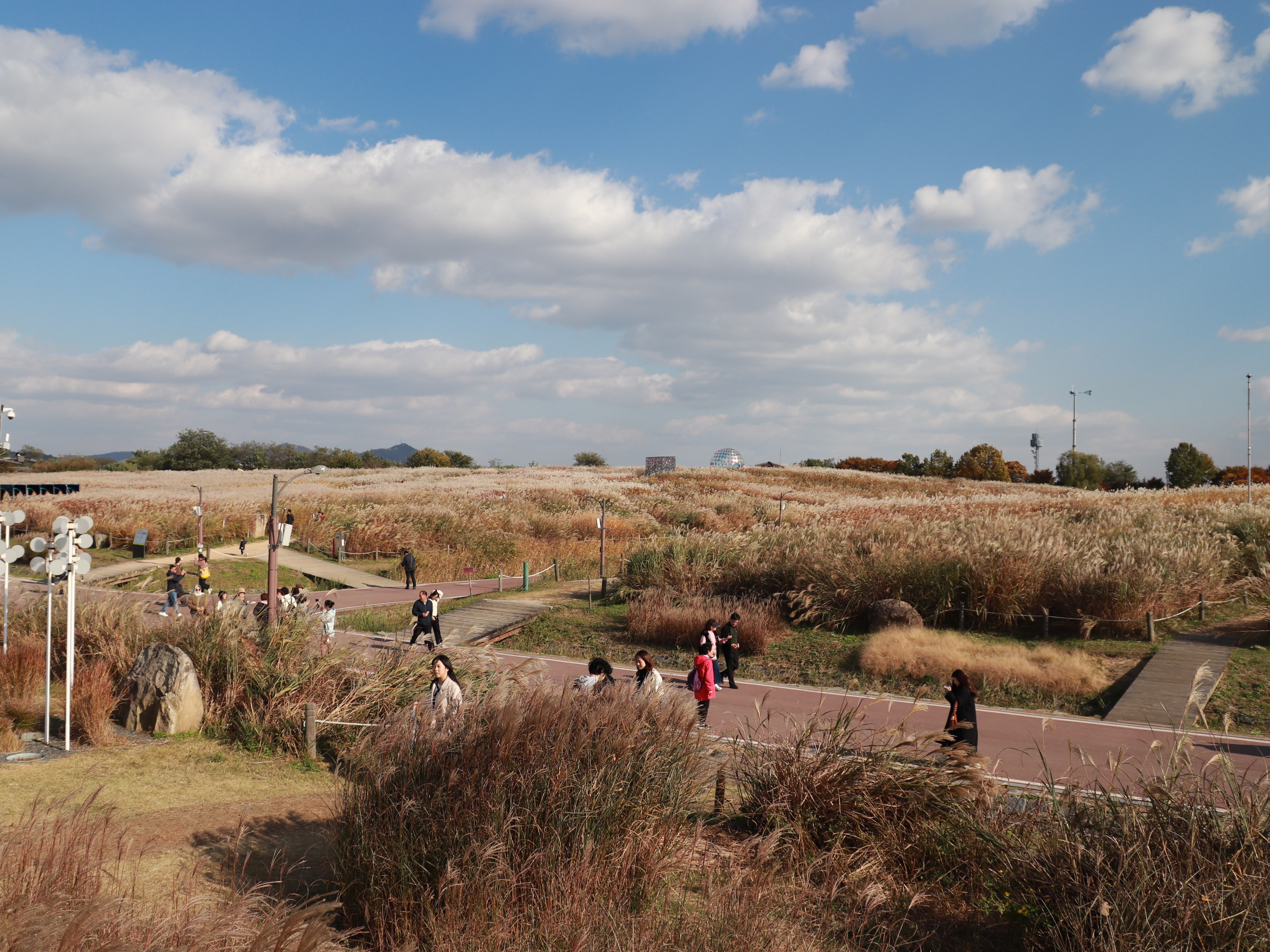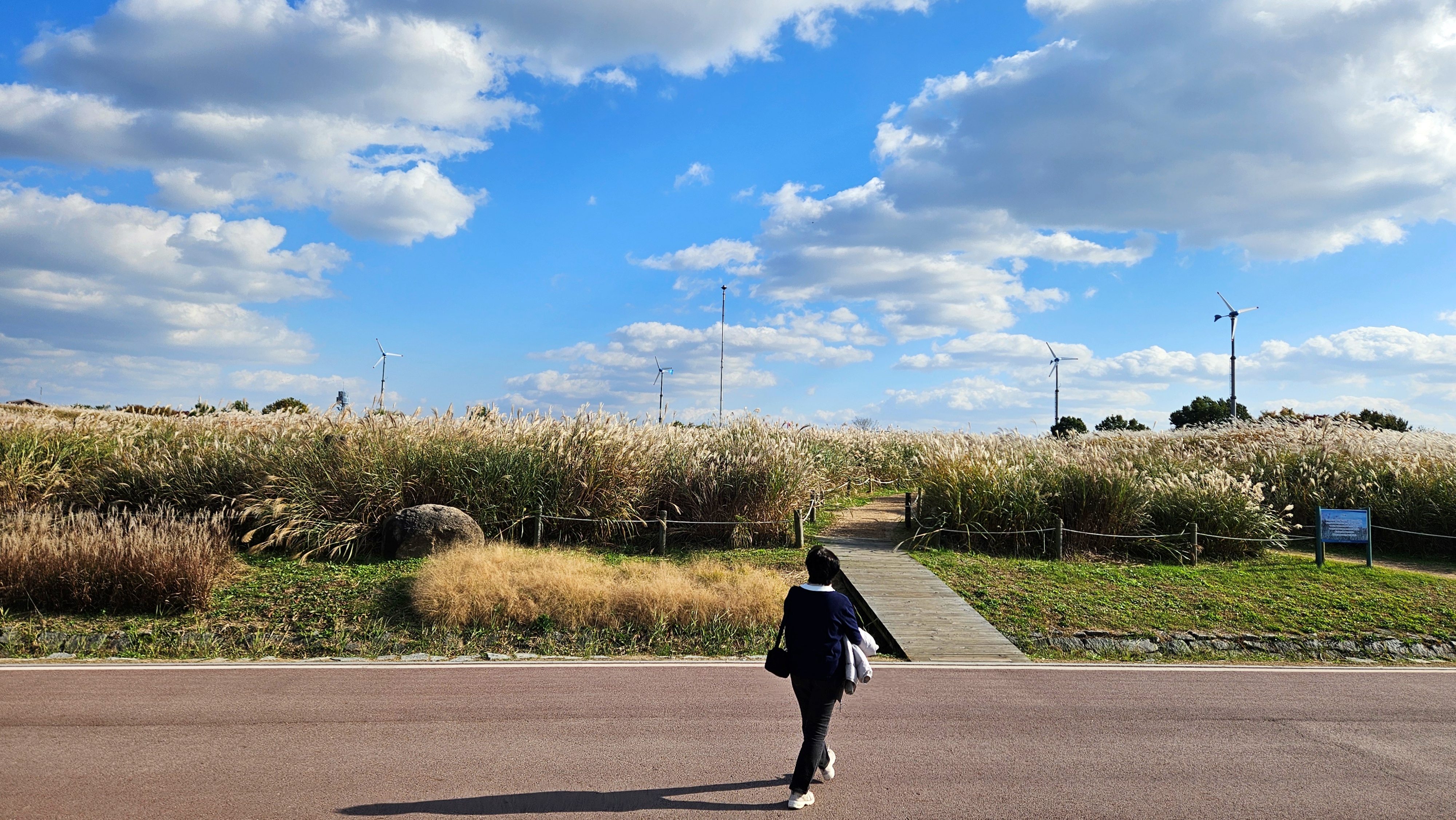 해 질 녘 시간에 맞추어 도착하면 주황빛과 붉은빛으로 물드는 하늘 빛이 은빛 억새밭 위에 내려앉으면서 정말 한 폭의 그림 같은 풍경이 펼쳐지는 걸 알고 있지만, 부득이 저는 햇살이 가장 따사로운 시간대인 오후 1시에서 3시 사이에 공원을 찾았습니다.