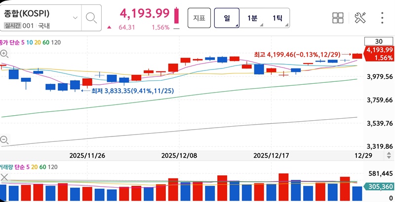 | 코스피 지수 | 4180선 돌파, 11월 이후 최고치 |